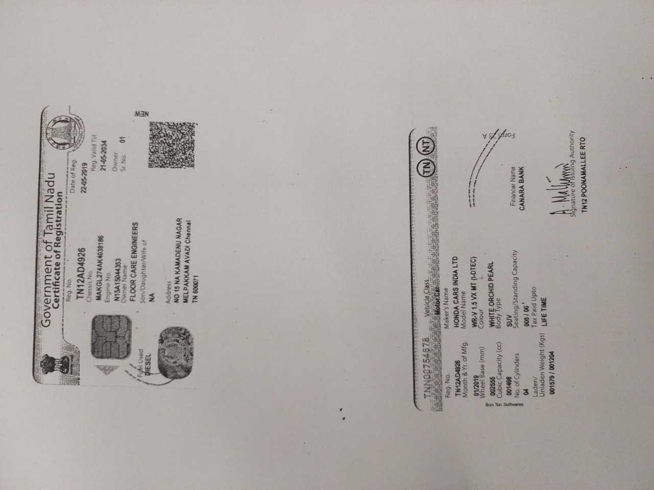 Reg. No : TN12AD4926