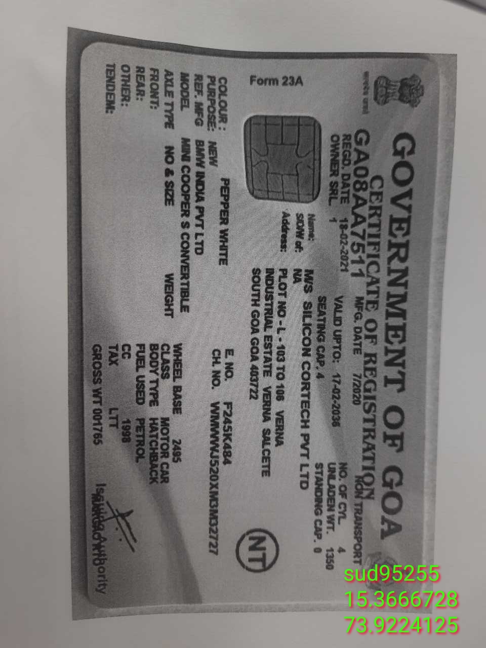 Reg. No : GA08AA7511
