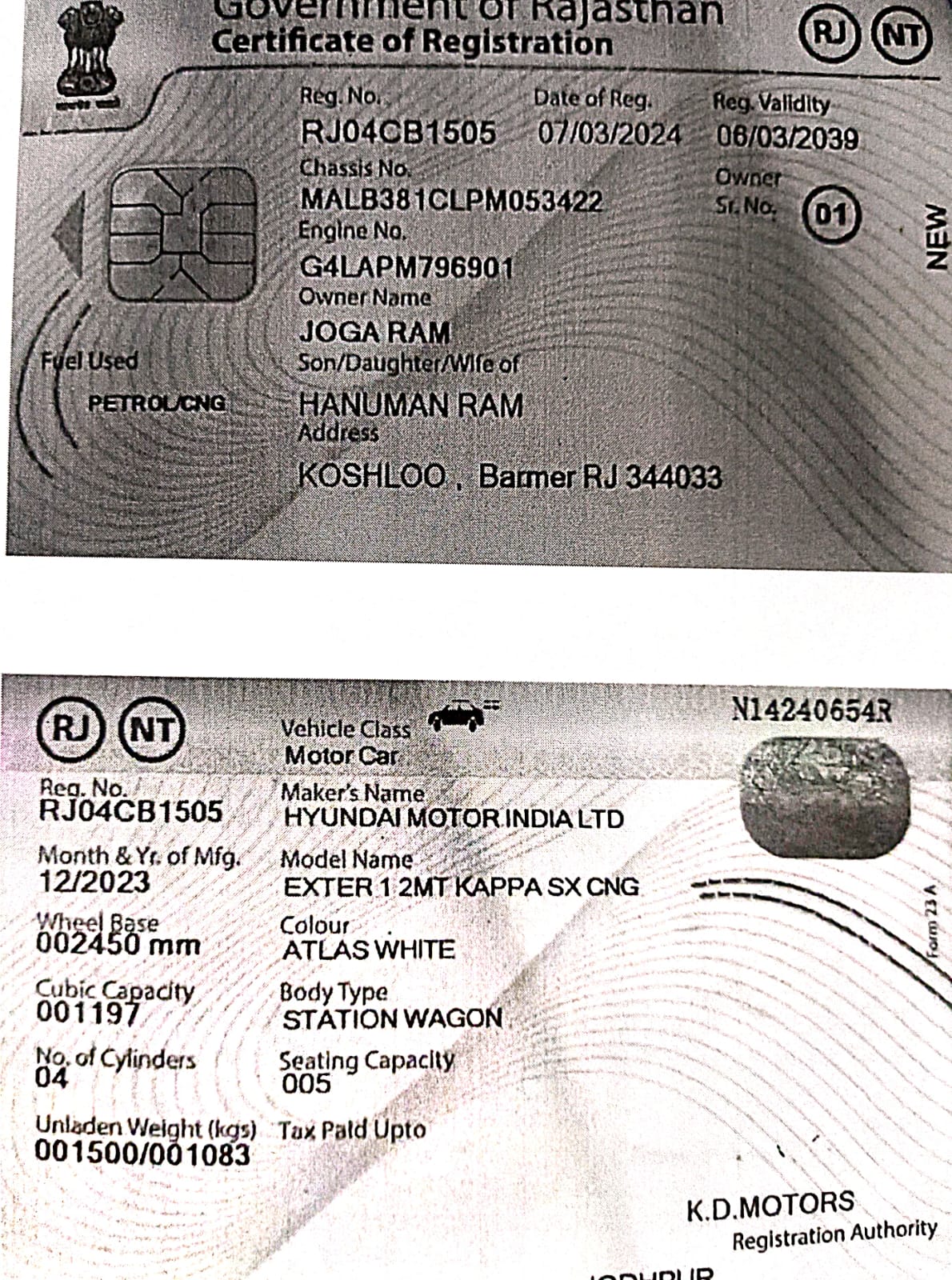 Reg. No : RJ04CB1505