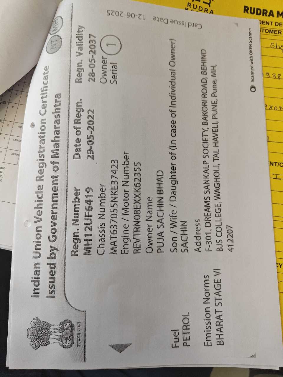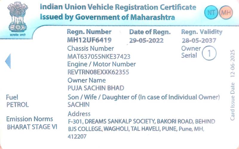 Reg. No : MH12UF6419