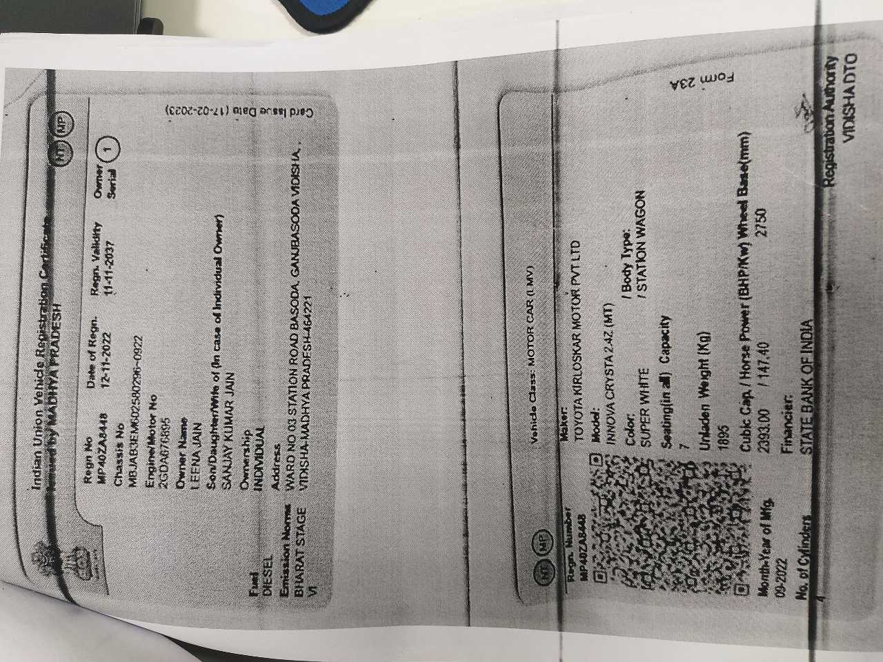 Varient: TOYOTA INNOVA CRYSTA 2.4 ZX MT 7 STR