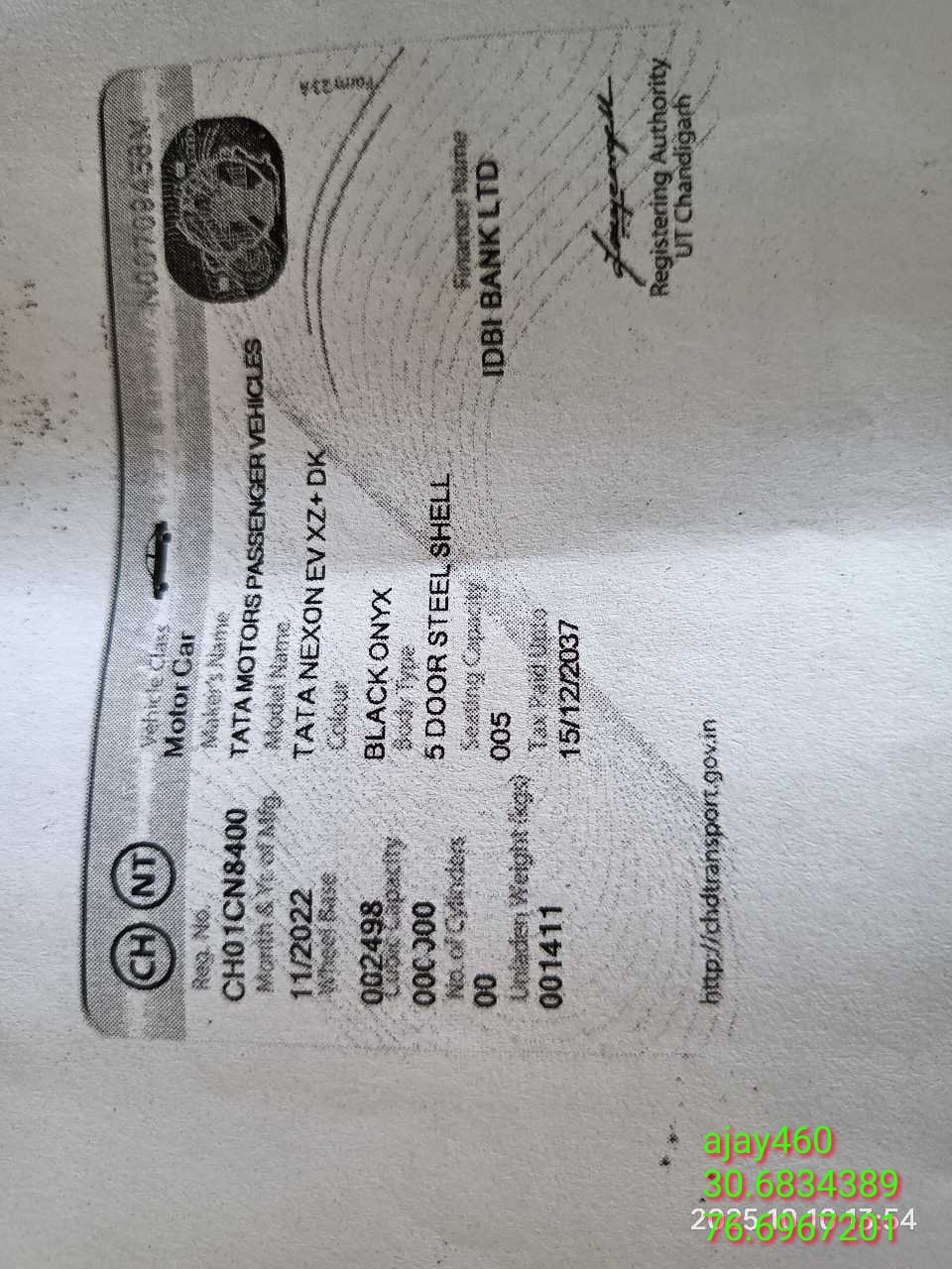 Reg. No : CH01CN8400