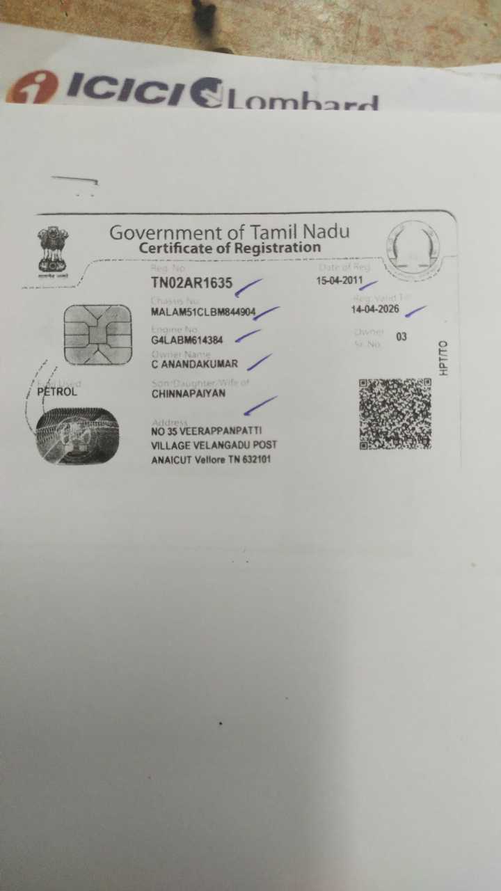 Reg. No : TN02AR1635