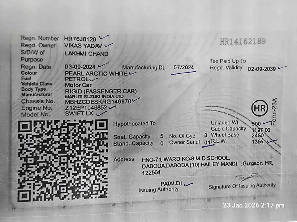 Reg. No : HR76J8120