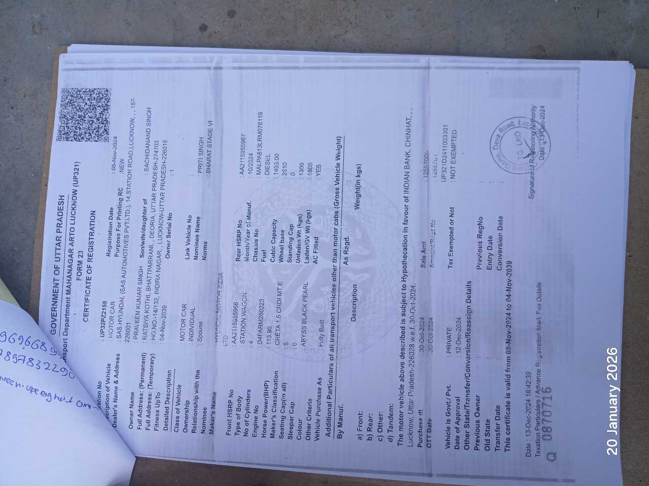 Reg. No : UP32PZ2158