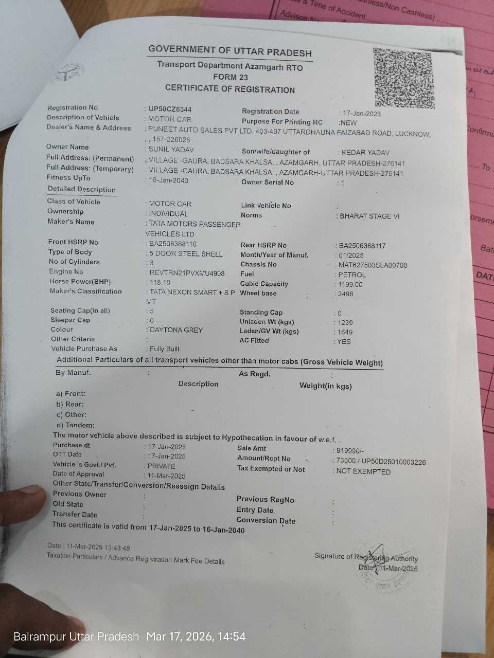 Reg. No : UP50CZ6344