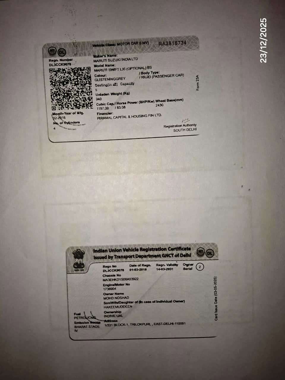 Reg. No : DL3CCK9078