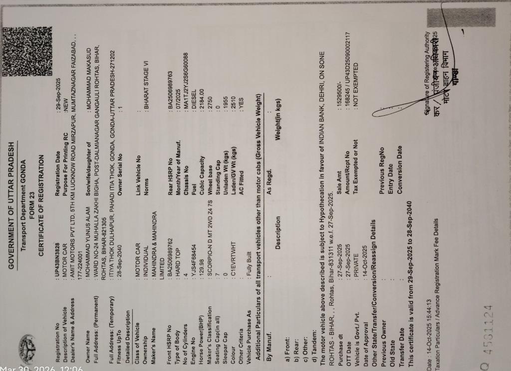 Varient: SCORPIO N Z4 E DIESEL 4WD 7 STR